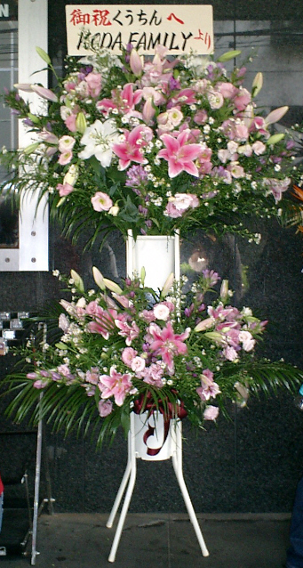 倖田來未様へくうちんより,ってねぇ?(笑)お花やさんがまだいたから直してもらったけど気付くの遅かったらやばかったね(^^ゞその届いたお花が立派でしかも2段!←ここポイント(笑) その後に新・真夜中の王国,サイコドクター,ザッピィ,EXILEからのお花も届いたけど宛名が「くうちん」になってるうちらのお花は異彩を放ってました(爆)